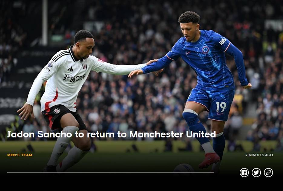 直播吧06月11日讯 切尔西发布官方公告,桑乔租借期满回归曼联。